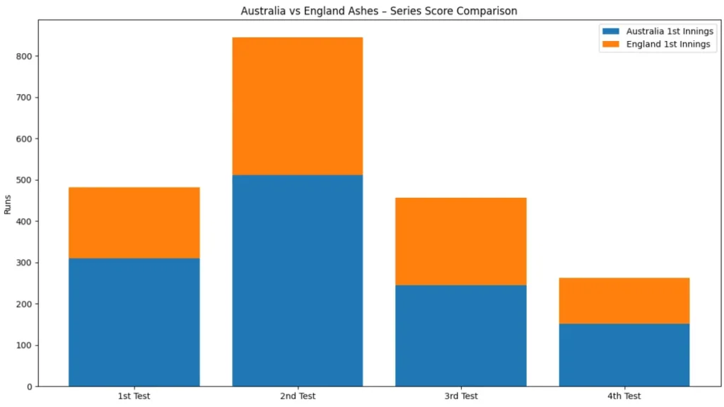 The series has seen a mix of high scores, tough batting conditions, and moments where the ball dominated the bat. This has made the Cricket scores australia vs england fluctuate, with neither team ever fully comfortable until the very end of each Test.